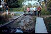 The process of bringing the second beam across the creek. (I wanted to be there bearing the load, but everyone insisted that I take the pictures.) |